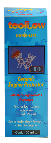Tecflow Ceramic Engine Protector enthält 40 flüssige Komponenten und ultrafeine weiche keramische Teilchen mit einer Größe von 0,3 bis 0,7 Mikron und kann keine Verstopfungen von Ölfiltern oder Ölkanälen verursachen. Inhalt : Dose 450ml Produktcode : 788038