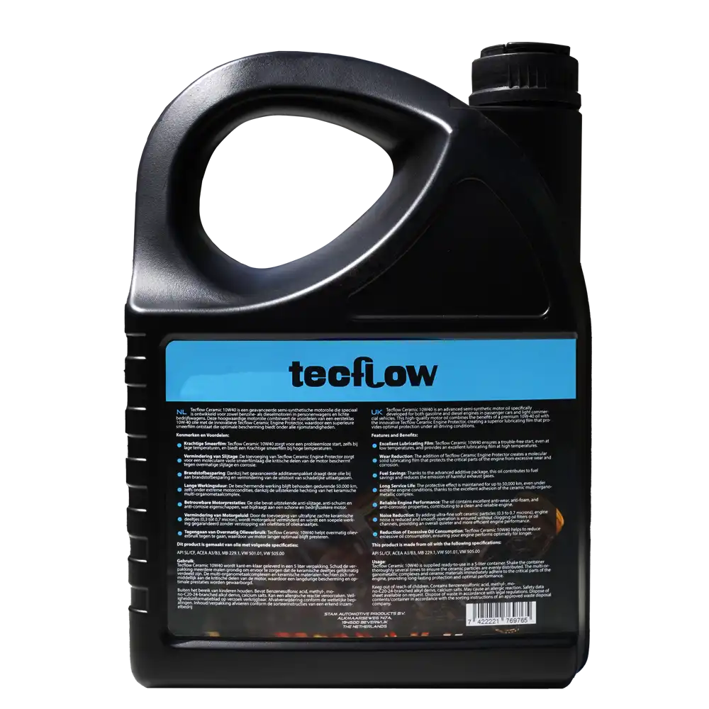 Krachtige Smeerfilm: Tecflow Ceramic 5W30 zorgt voor een probleemloze start, zelfs bij lage temperaturen, en biedt een krachtige smeerfilm bij hoge temperaturen.